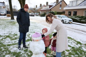 Heerenveen – Aan de Schouw in Heerenveen trokken ouders en kinderen vandaag massaal naar buiten om te genieten van de sneeuw.