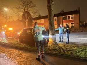 Heerenveen – Aan de Atalantastraat in Heerenveen is zaterdagavond een auto tegen een boom gebotst.
