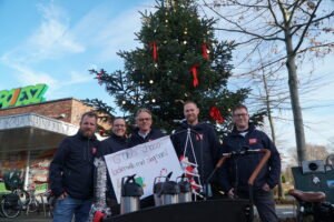 Heerenveen – In winkelcentrum De Greiden is zaterdagmorgen gezamenlijk een grote kerstboom geplaatst.