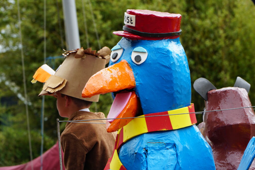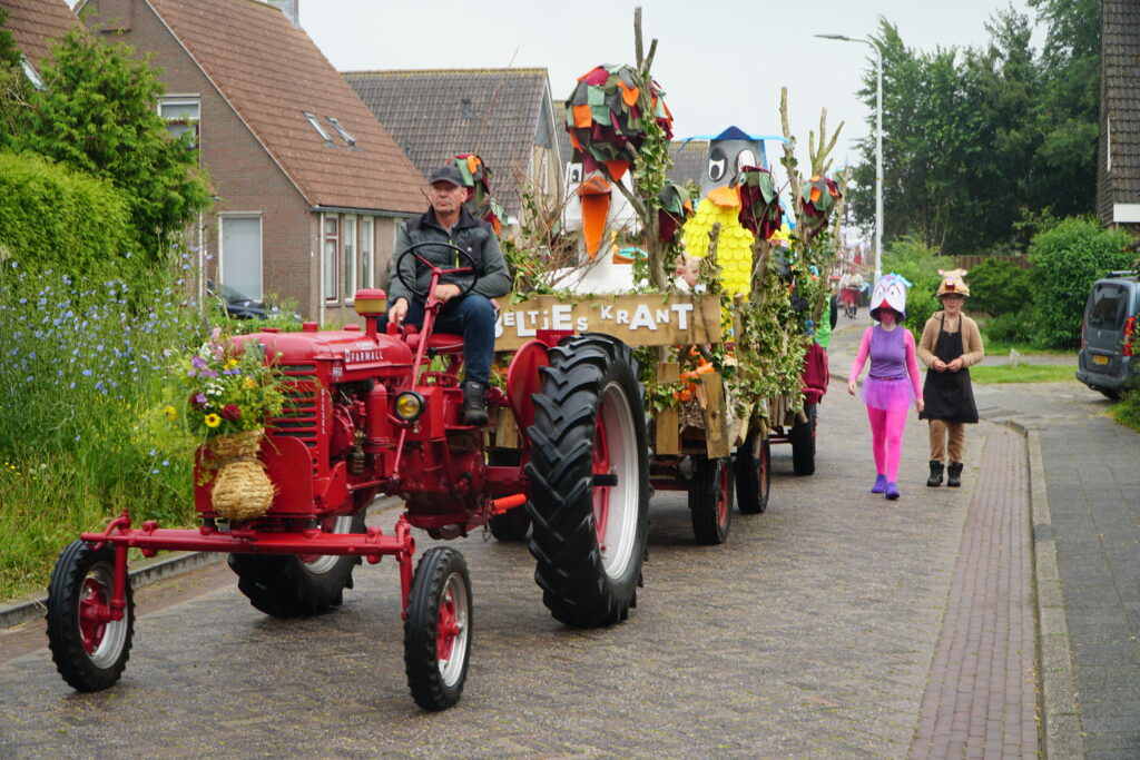 Op zaterdag reden maar liefst negen grote praalwagens door het dorp. Deze indrukwekkende wagens waren het hoogtepunt van de dag, hoewel het weer niet meewerkte. Ondanks de regen bleef de sfeer gezellig. “Het is fantastisch om te zien hoe iedereen betrokken is, en hoe mooi de praalwagens eruit zien. Er is echt veel tijd en energie in gestoken. Sommige mensen waren al sinds april bezig met het maken van de karren”, aldus Douwe van der Zee van de organisatie.