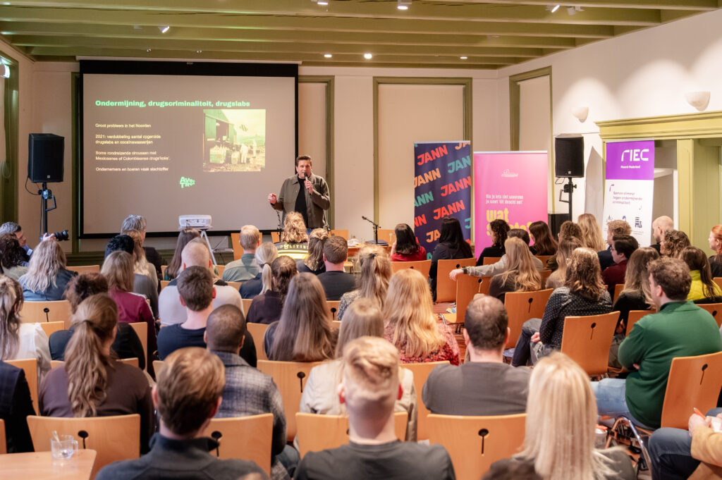 Ongeveer tachtig jonge ambtenaren uit Groningen, Friesland en Drenthe kwamen samen om met elkaar in gesprek te gaan over ondermijning en wat dat betekent voor hun dagelijkse werk. De bijeenkomst stond in het teken van bewustwording: hoe herken je signalen van (drugs)criminaliteit op het platteland? En wat doe je als je iets vermoedt?