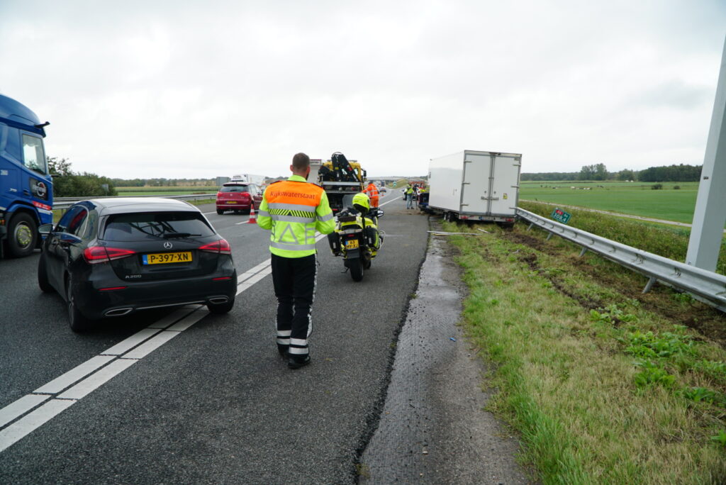 Een auto met aanhanger schaarde in de richting van Joure en kwam daarbij tot stilstand op de snelweg.