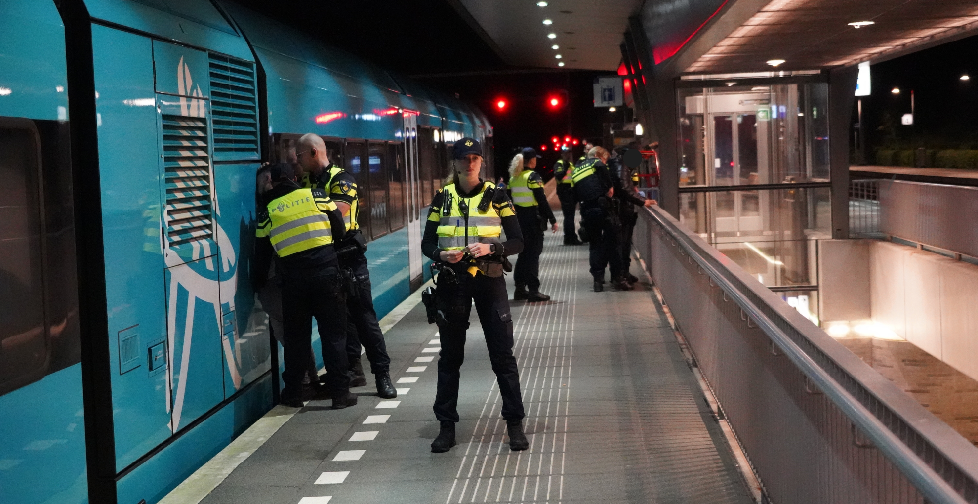 Na de controles kon de trein alsnog vertrekken. De politie onderzoekt wat er precies is voorgevallen.