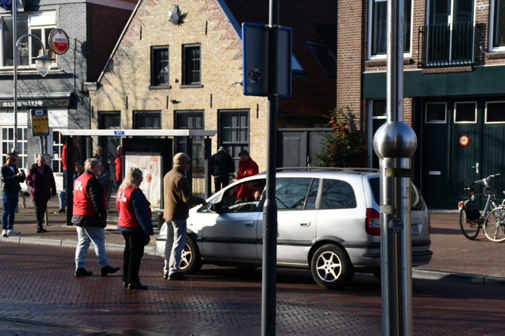 Tussen twaalf en één uur verzamelden de actievoerders zich bij het inrijverbod ter hoogte van de Sint Martinuskerk, waar zij automobilisten waarschuwden voor de cameracontroles.