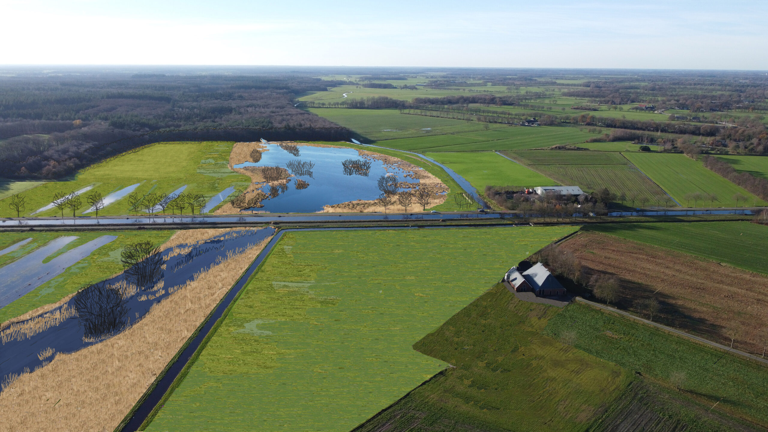 – Inrichting van 350 hectare nieuwe natuur in het beekdal (Natuurnetwerk Nederland – NNN);