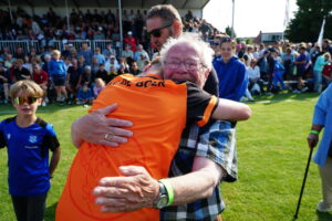 Heerenveen – De bemanning van het Heerenveense skûtsje werd zaterdag feestelijk onthaald in Heerenveen.