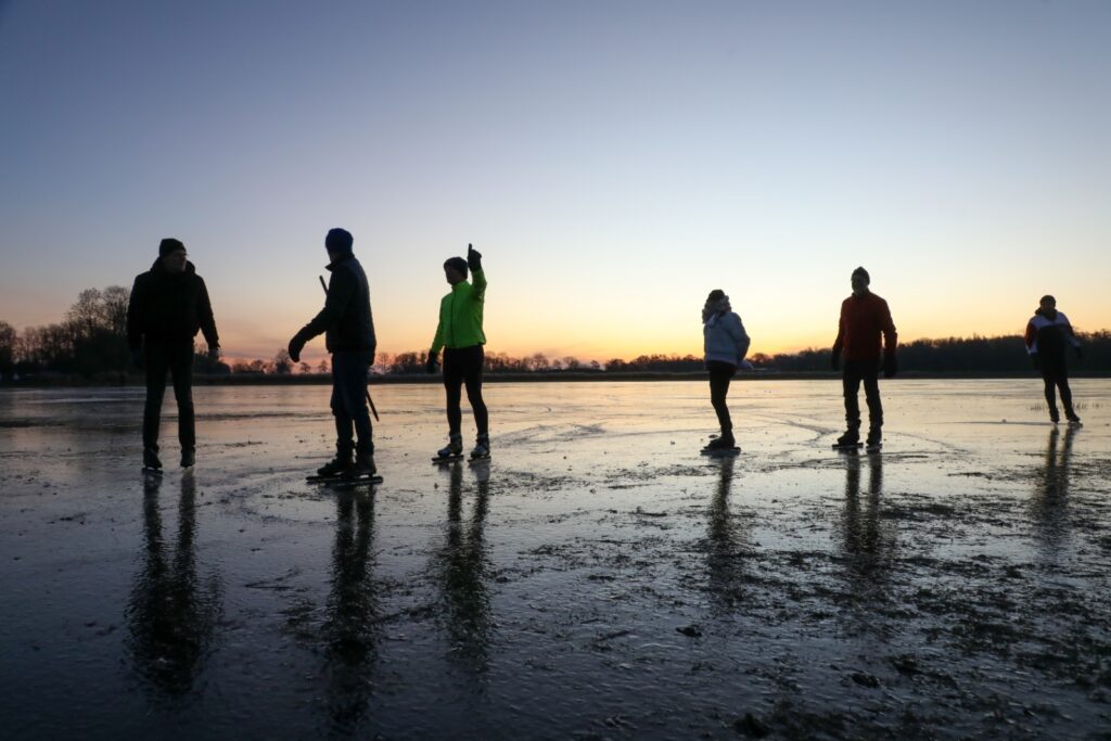 Ryptsjerk – Al voordat de zon opkomt staan de eerste schaatsers vanmorgen op de Ryptsjerksterpolder.