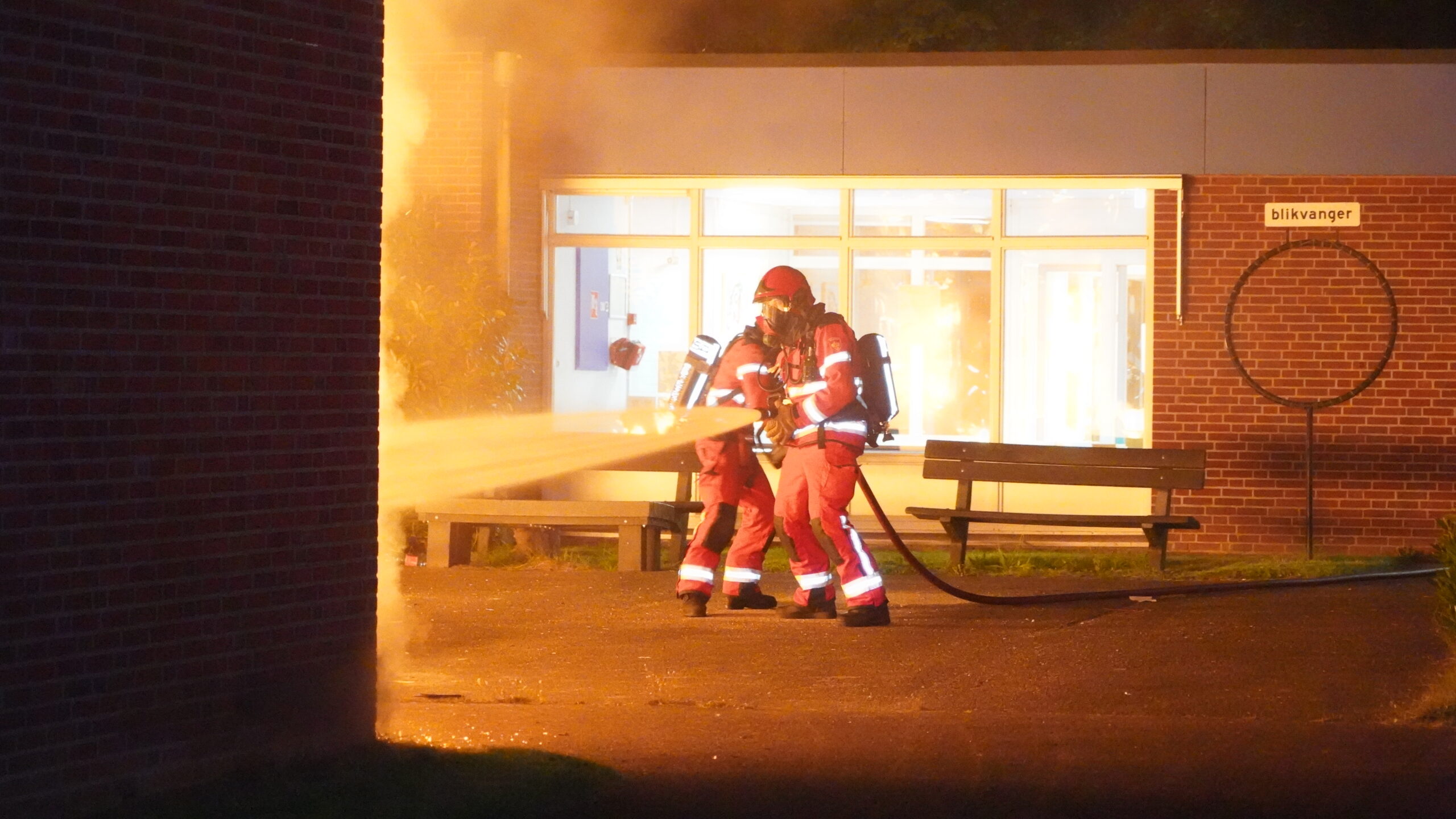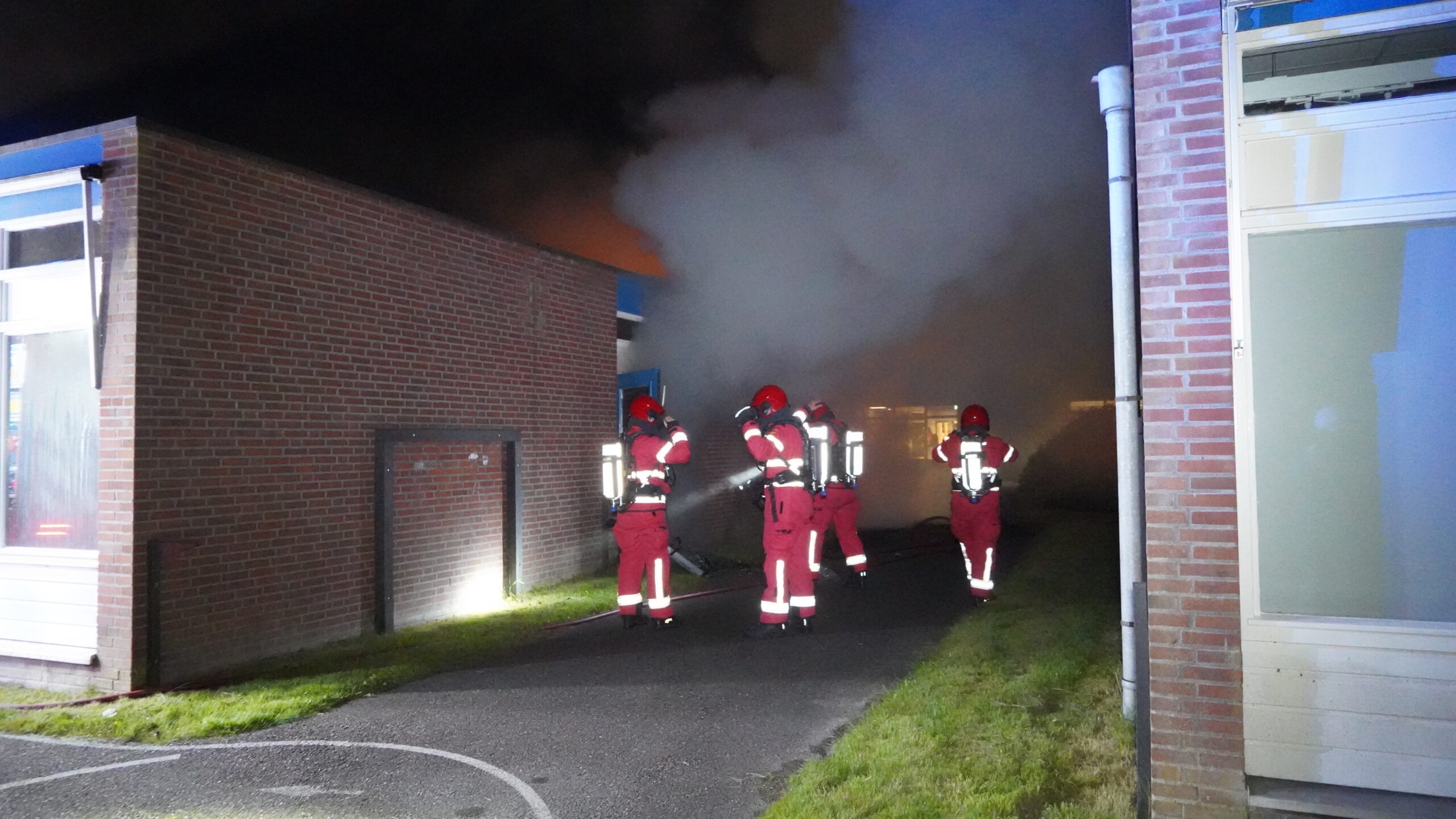 Twee blusvoertuigen en een hoogwerker zijn gealarmeerd. Brandweerlieden proberen overslag naar de school te voorkomen. Wat er precies in brand staat, is ons nog niet duidelijk.
