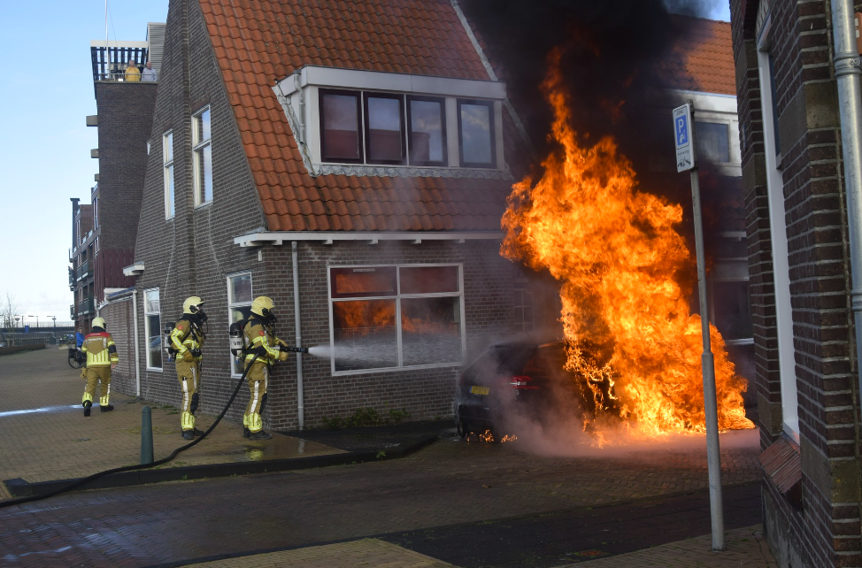 Harlingen – Een felle uitslaande brand heeft donderdagochtend aan de Zuiderstraat in Harlingen een auto verwoest.