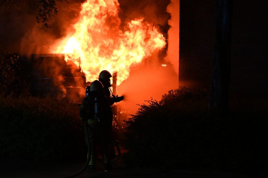 Bij aankomst troffen brandweer en politie een felle brand aan in een schuur achter de woning. Hoewel het vuur snel onder controle werd gebracht, kon niet worden voorkomen dat ook het woonhuis schade opliep.