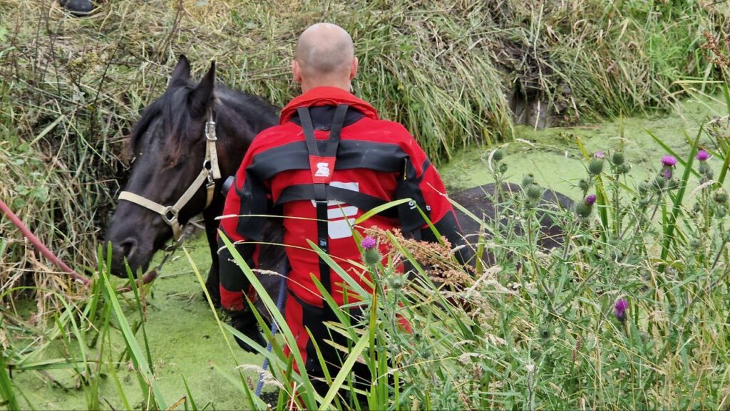 Loenga – Een paard raakte vrijdagmorgen op de Ivige Leane bij Loenga te water.
