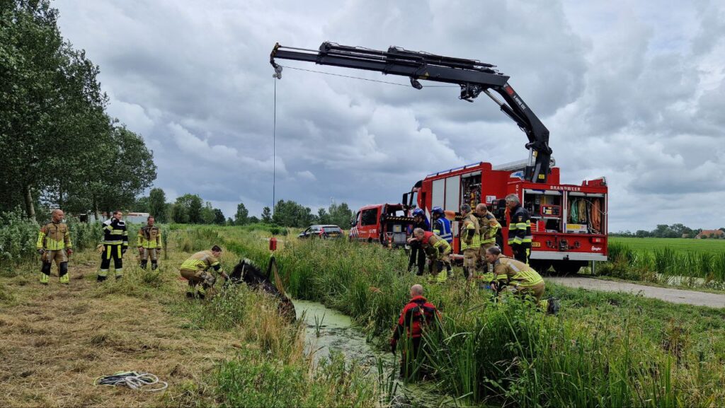 ‘Vermoeid’ paard uit sloot getild in Loenga